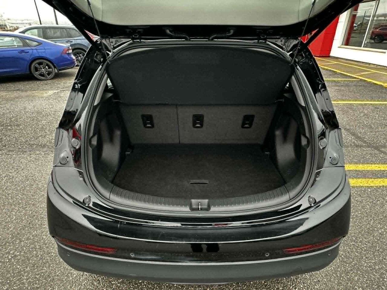 • Storage, rear cargo area, intended for charging cord, covered